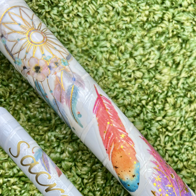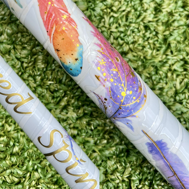 Elke Sacred Spin-decoratie wordt afgewerkt met een sterke bescherm- en glanslaag, zodat je hoepel blijft stralen!